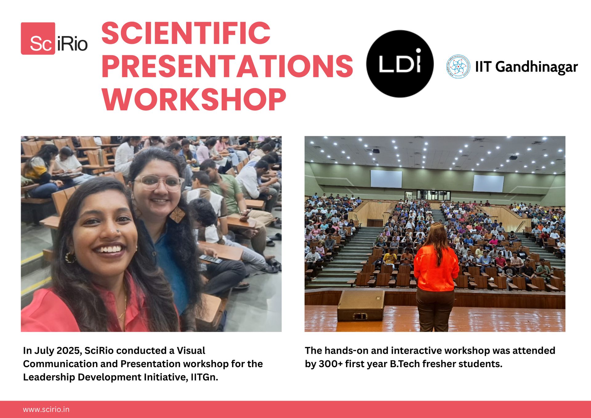 At IIT Gandhinagar, SciRio led a session on Science Communication through Presentations for incoming B.Tech students, in collaboration with the institute’s Leadership Development Initiative. Working with first-year students reminded us how early communication skills influence confidence, clarity, and scientific thinking over an entire career.